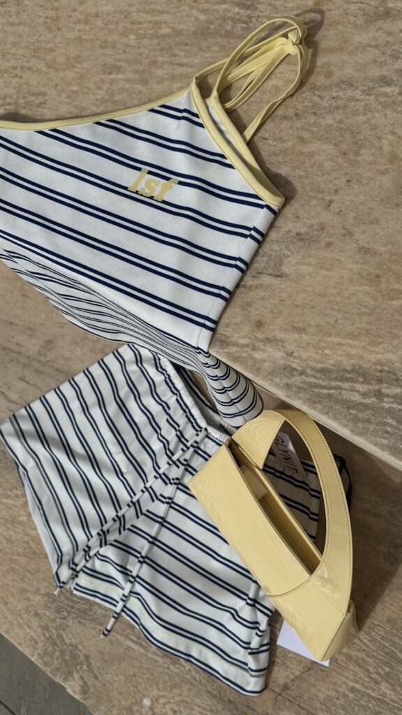 Sometimes one piece does it all. The Grace Top-Dress from SUNSETGO (42€ from 84€ — run, don’t walk) is that piece. Short enough to feel summer, structured enough to feel expensive, styled to be worn solo.
