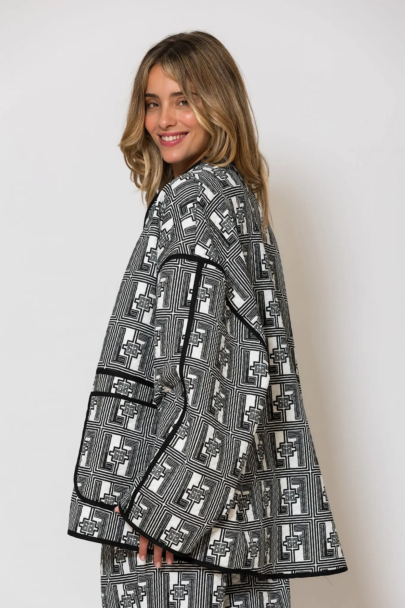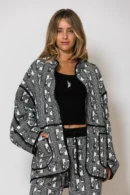258 7007 “Nana’s Quilt” Illustration Print Loose fit Cardigan