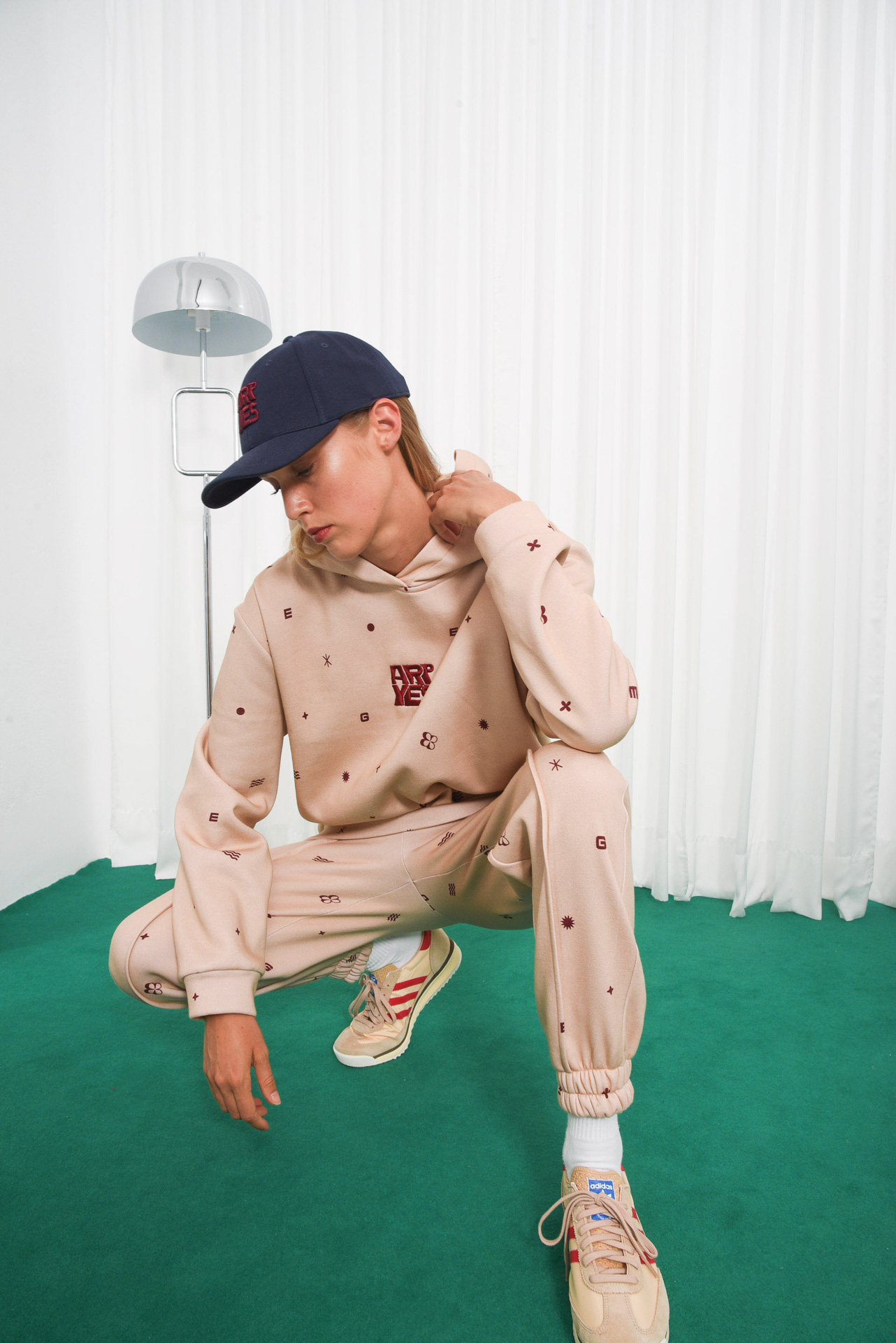 The Ego Hoodie combines comfort and design with a relaxed oversized fit. Made from soft beige cotton, it features an all-over burgundy graphic print and an embroidered “ARPYES” logo on the chest. Designed with dropped shoulders, a hood, and ribbed trims, it’s perfect for effortless everyday style.
